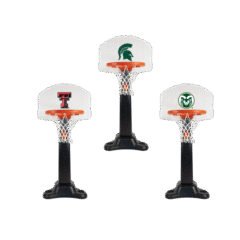 The HUPLAY hoop (ages 2+) that grows with the player features a wide hoop and authentic swish net. Available with a choice of collegiate team logos. Includes a Size 3 Mini Ball for little players with big dreams.